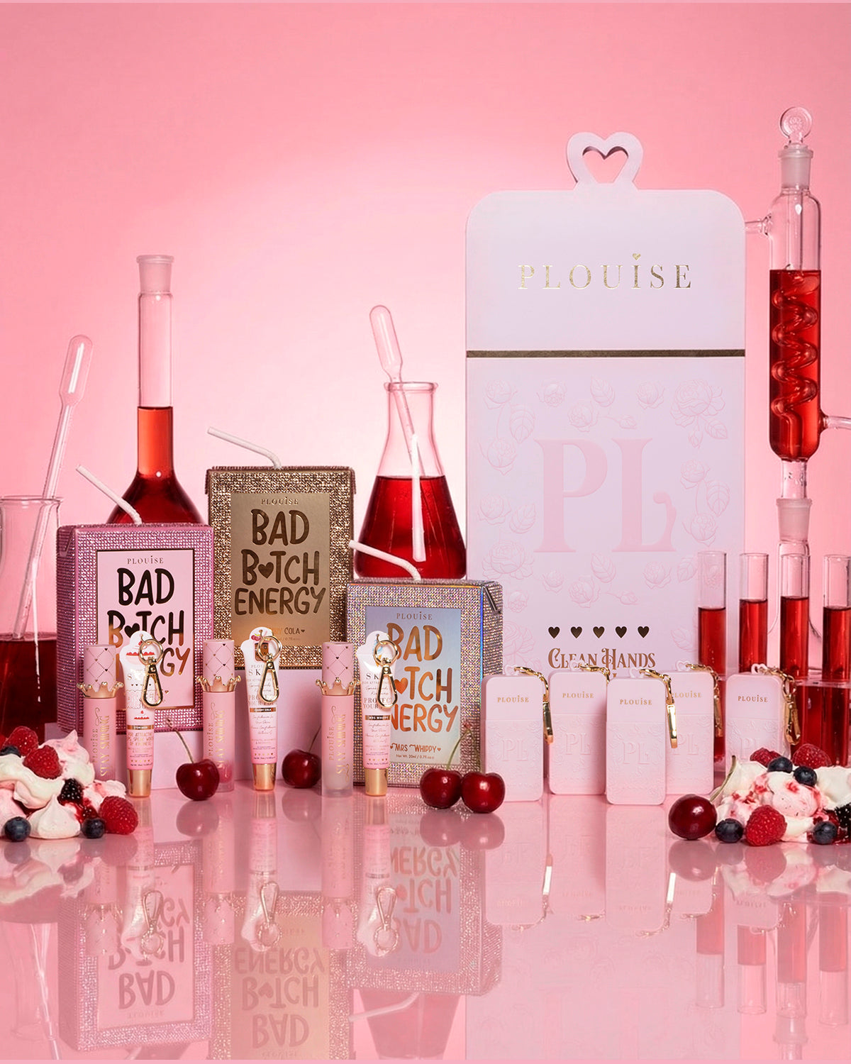 The Born To Sparkle set pairs three shimmering Crystal Bad Bitch Lip Duos with the full Hand Cleansing Spray PR Gift Set. Think glossy lips, juicy cherry scents and fresh hands wherever you go.
