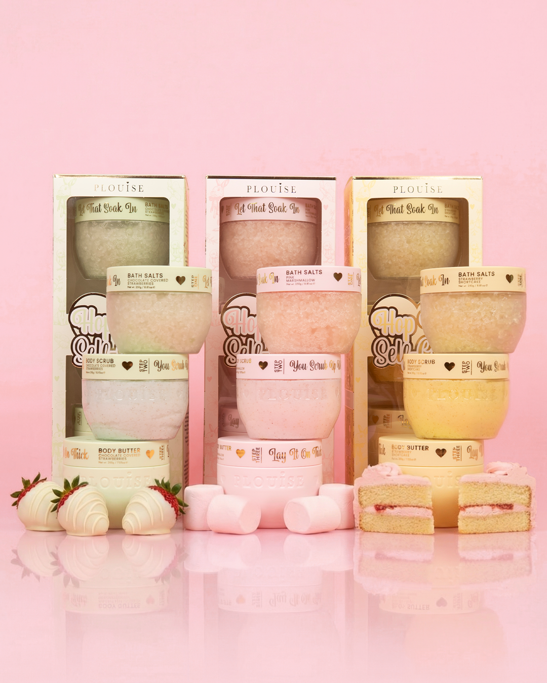 Inside the bundle, you’ll discover 3 Hop Into Self-Care sets, each bursting with dessert-inspired scents: