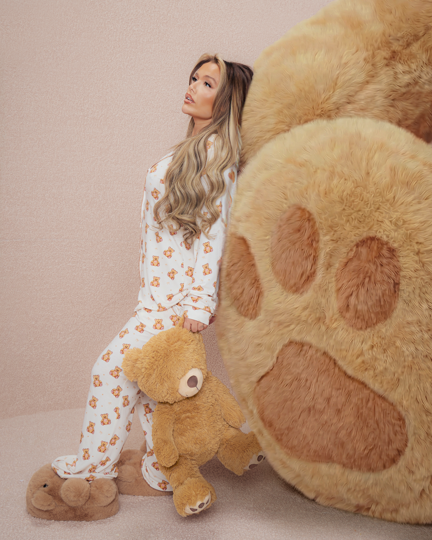 Tässä yksinomaan Teddy Collectionia varten suunnitellussa unenomaisessa pyjamasetissä on kauttaaltaan nallekuvio, joka tuo mukavan tunnelman kiillotetulla viimeistelyllä. Ajattele löhöilyä tyylikkäästi, tunne olosi kotoisaksi, vaikka et tekisi yhtään mitään. Täydellinen nukkumaanmenoa, elokuvailtoja tai yhteensopivia hetkiä Teddy-tarvikkeiden kanssa.